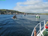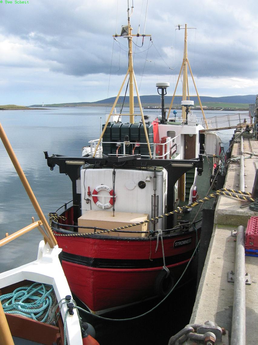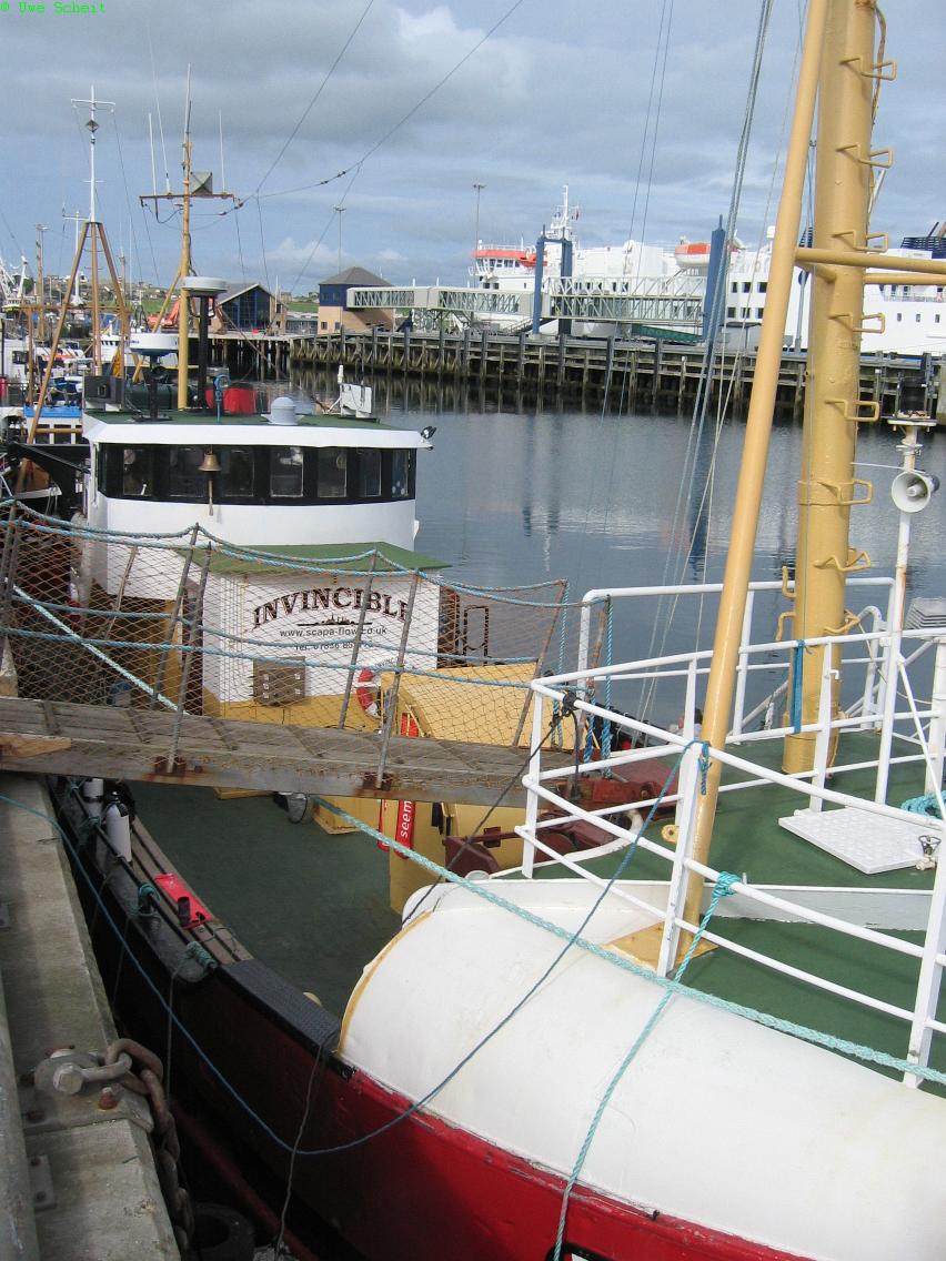 ein als Tauchboot umgebauter Fischkutter und das größte Tauchboot in Stromness.