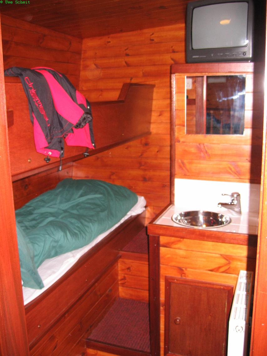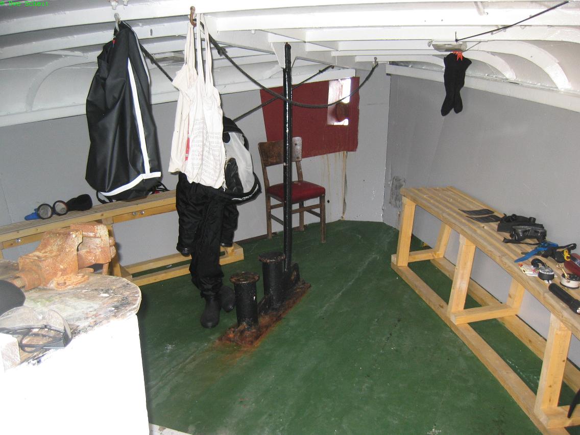 großer Trockenraum für's Gerödel, kleine Kajüten für 2 Personen. große